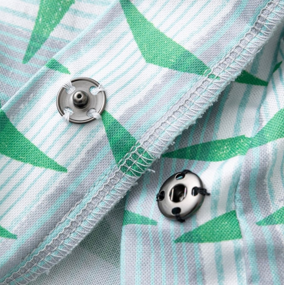 胸元にはスナップボタンがついていて、はだける心配も不要です。