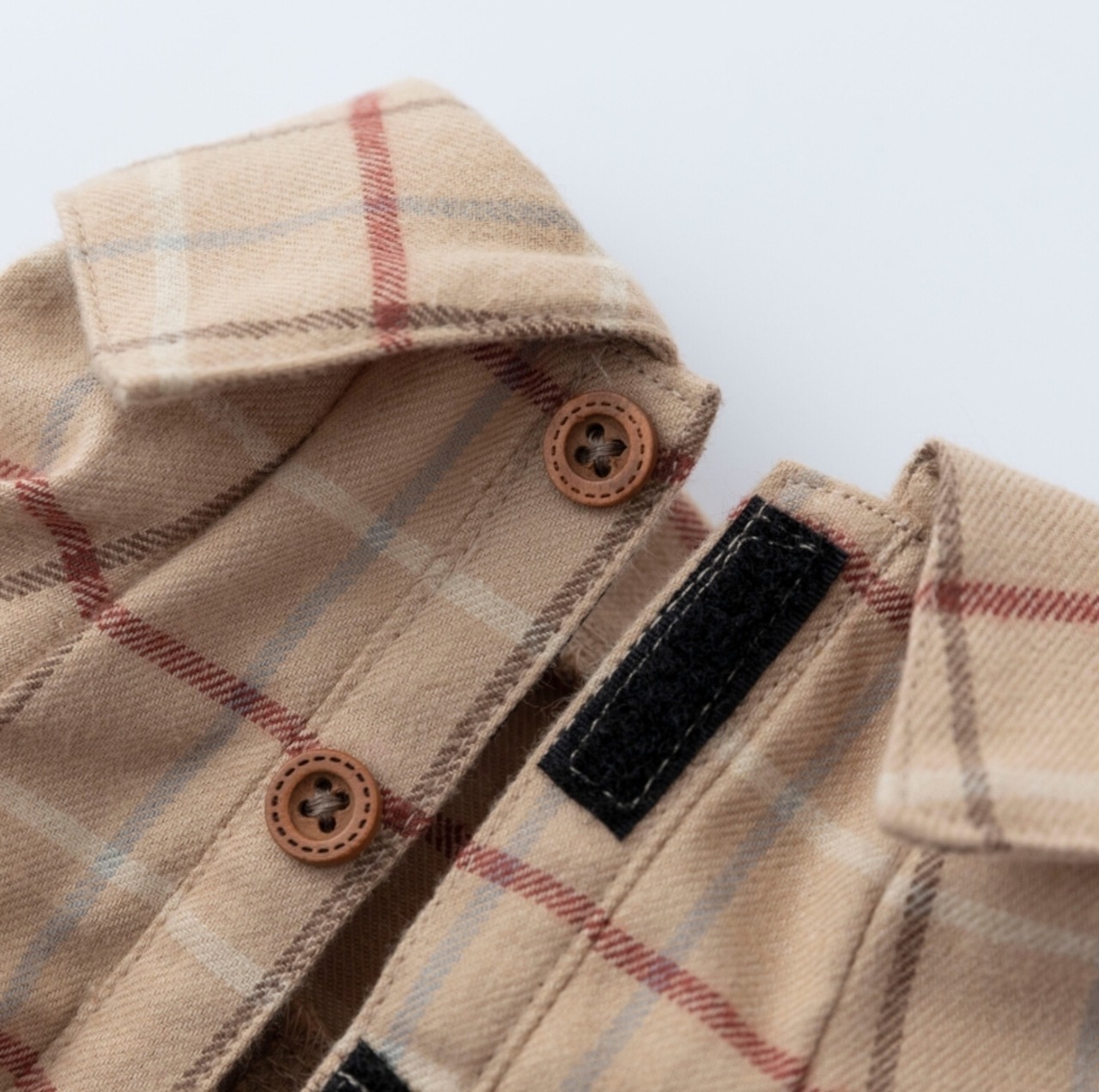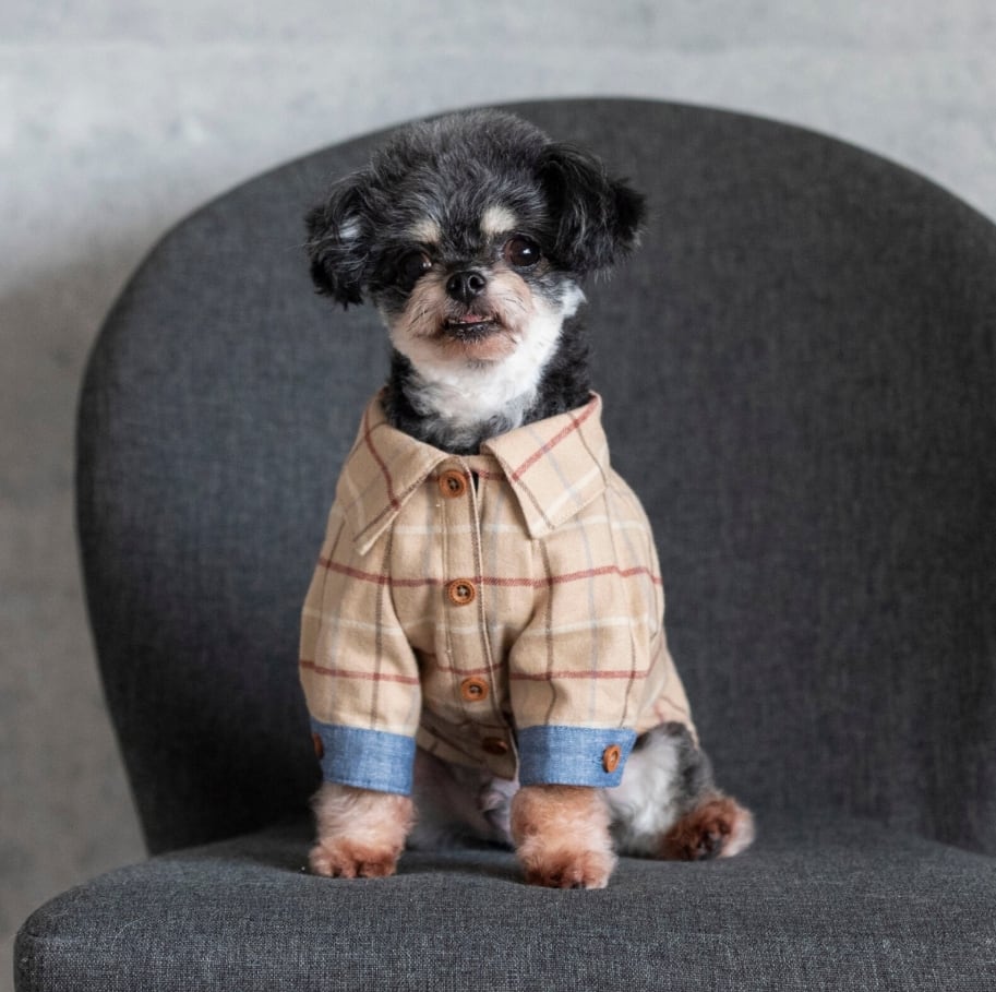 秋冬コーデに欠かせない、ベージュチェックの上品なシャツスタイル。