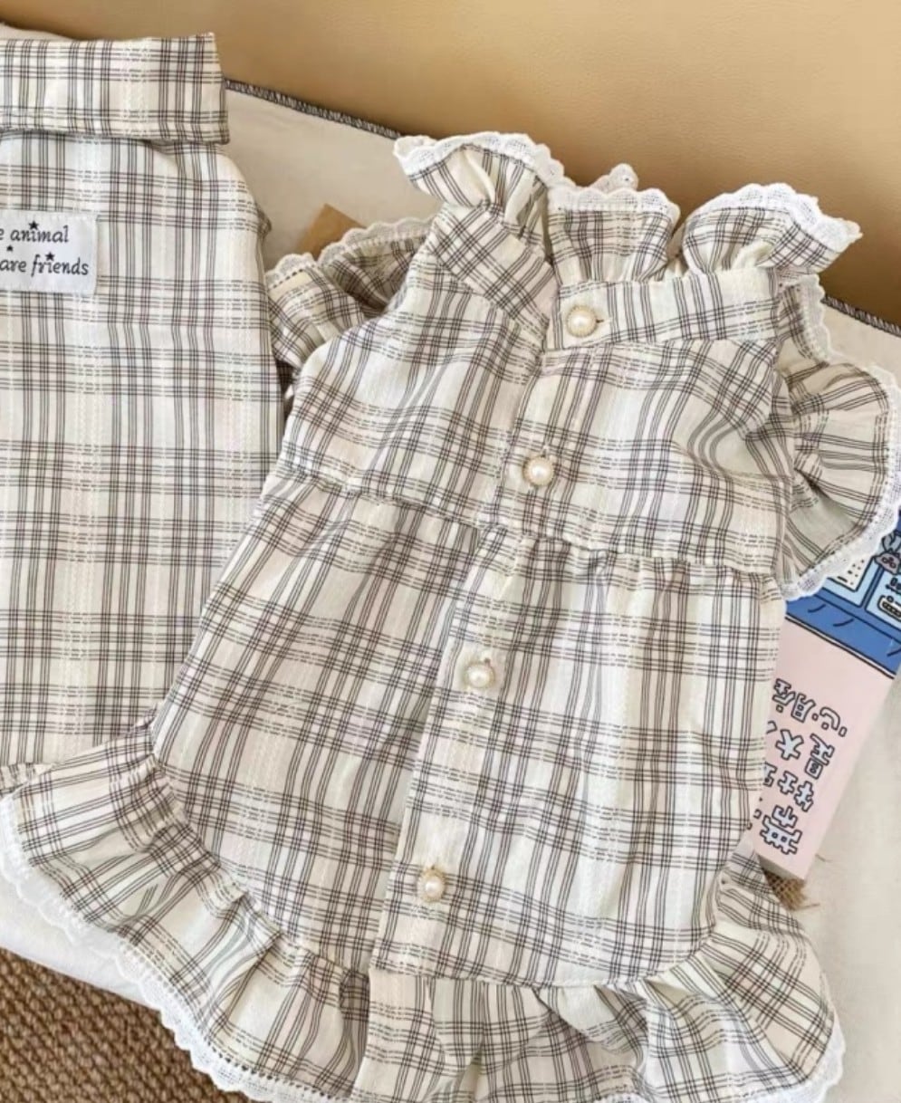 やわらかなベージュトーンのチェック柄に、繊細なフリルをあしらったガーリーなワンピース。
