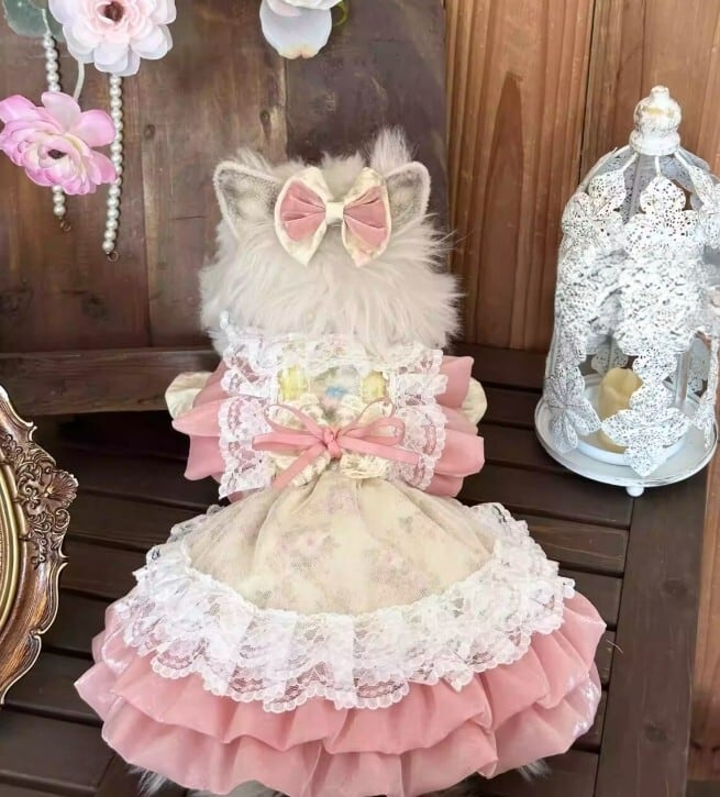 裾に重ねた贅沢なフリルが動くたびに優しく揺れ、